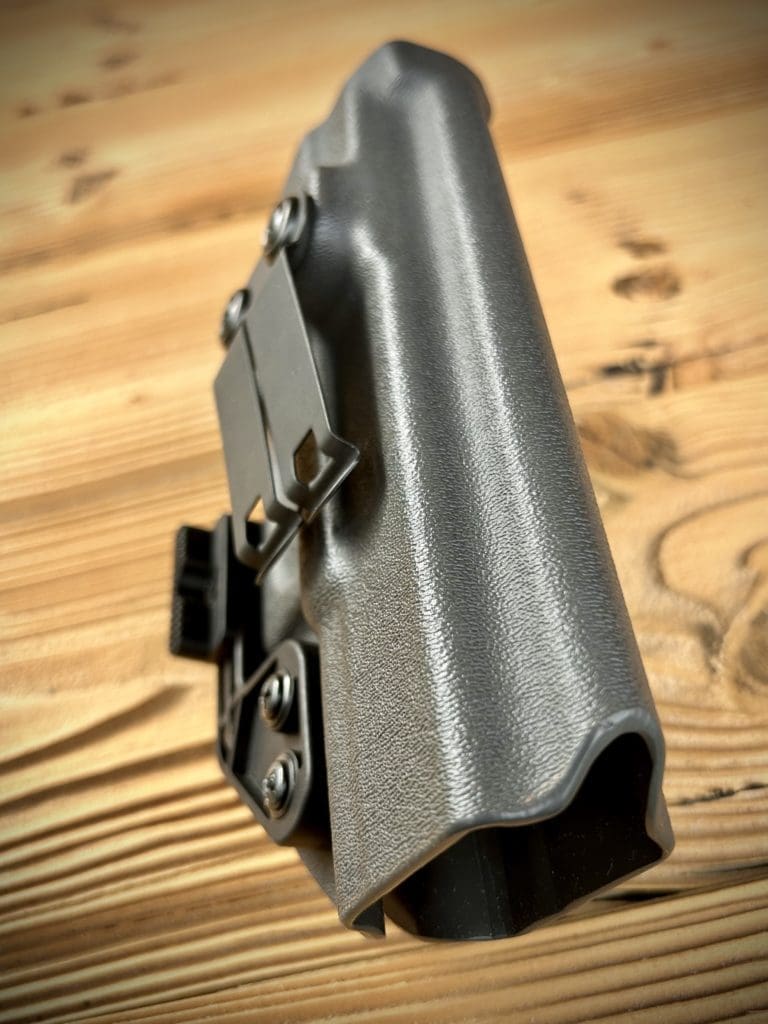Le holster IWB est spécialement conçu pour un port discret à l’intérieur de votre vêtement, tel qu’un port en «appendice». Plusieurs choix de clip sont disponibles, en fonction de vos besoins et de votre morphologie.