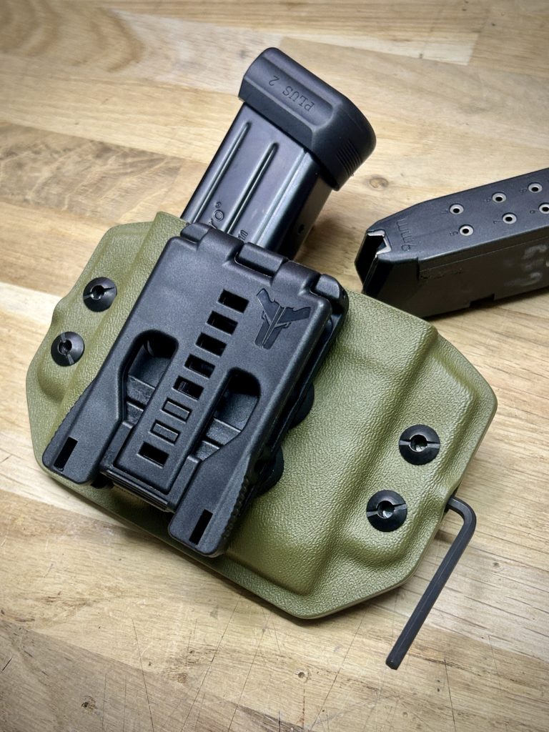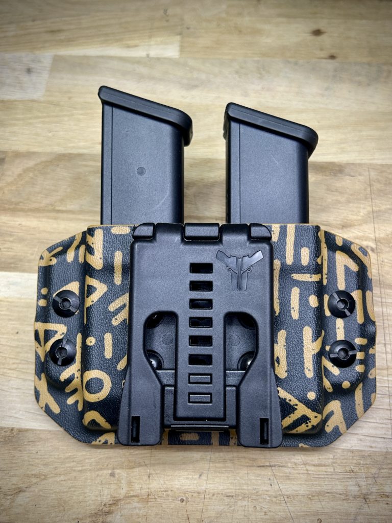 PORTE CHARGEURLes portes chargeur sont disponible en version universelles pour chargeur 9×19 mm, réglable avec le système MRD à l’aide d’une clé Imbus N°3, simple ou double chargeur. Disponible également pour chargeur AR15. Voir les vidéos Vidéos Envelope Instagram Youtube Facebook