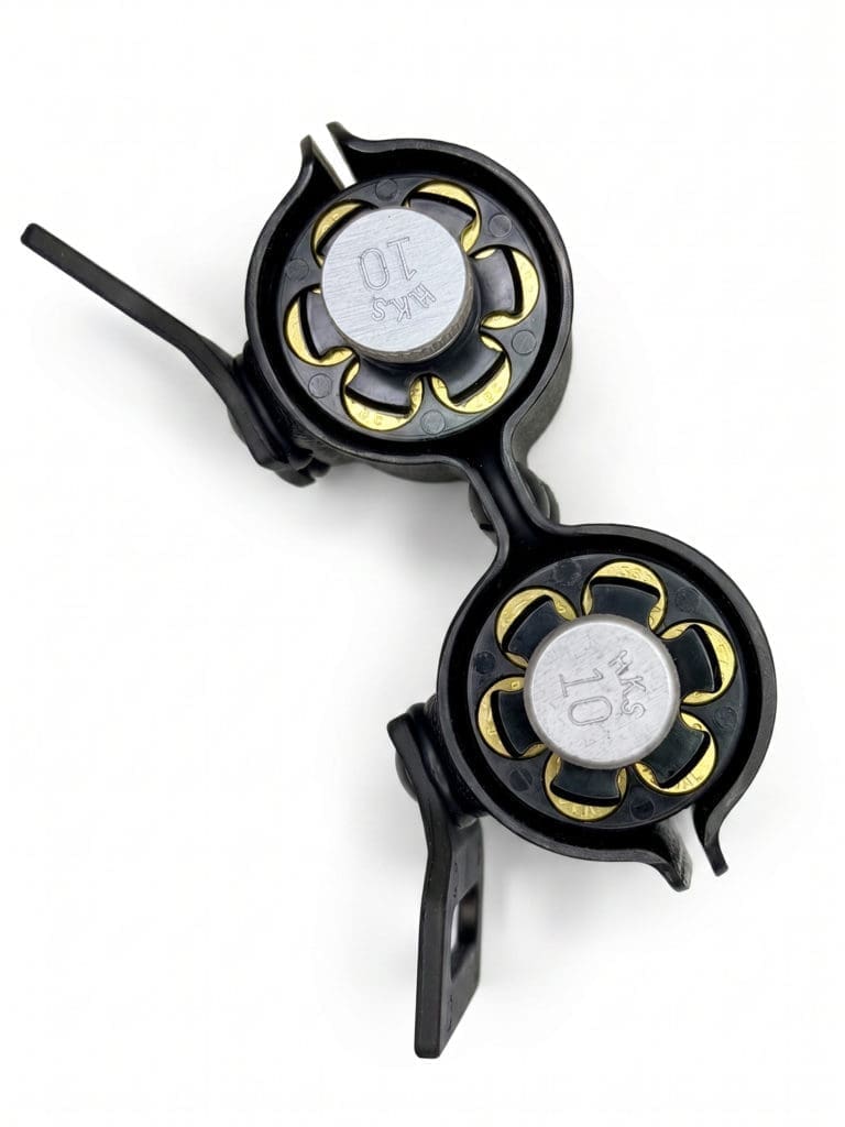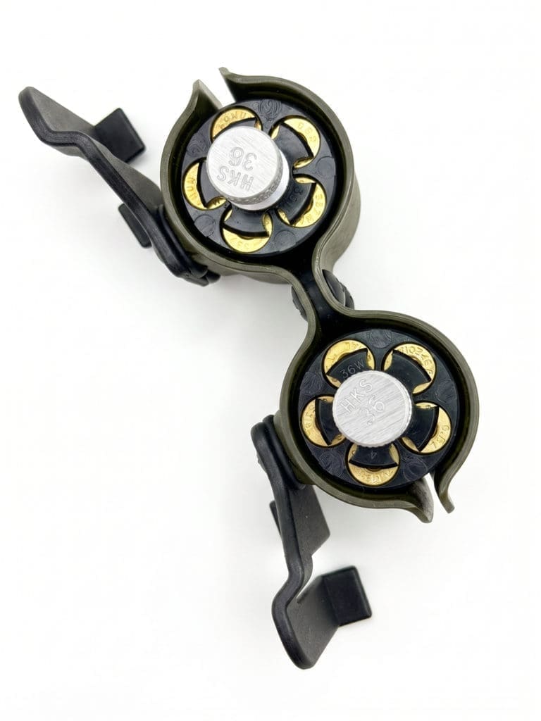 – Ø 36 mm (compatible avec le HKS 10A et d’autres speedloaders de même diamètre, 6 cartouches).