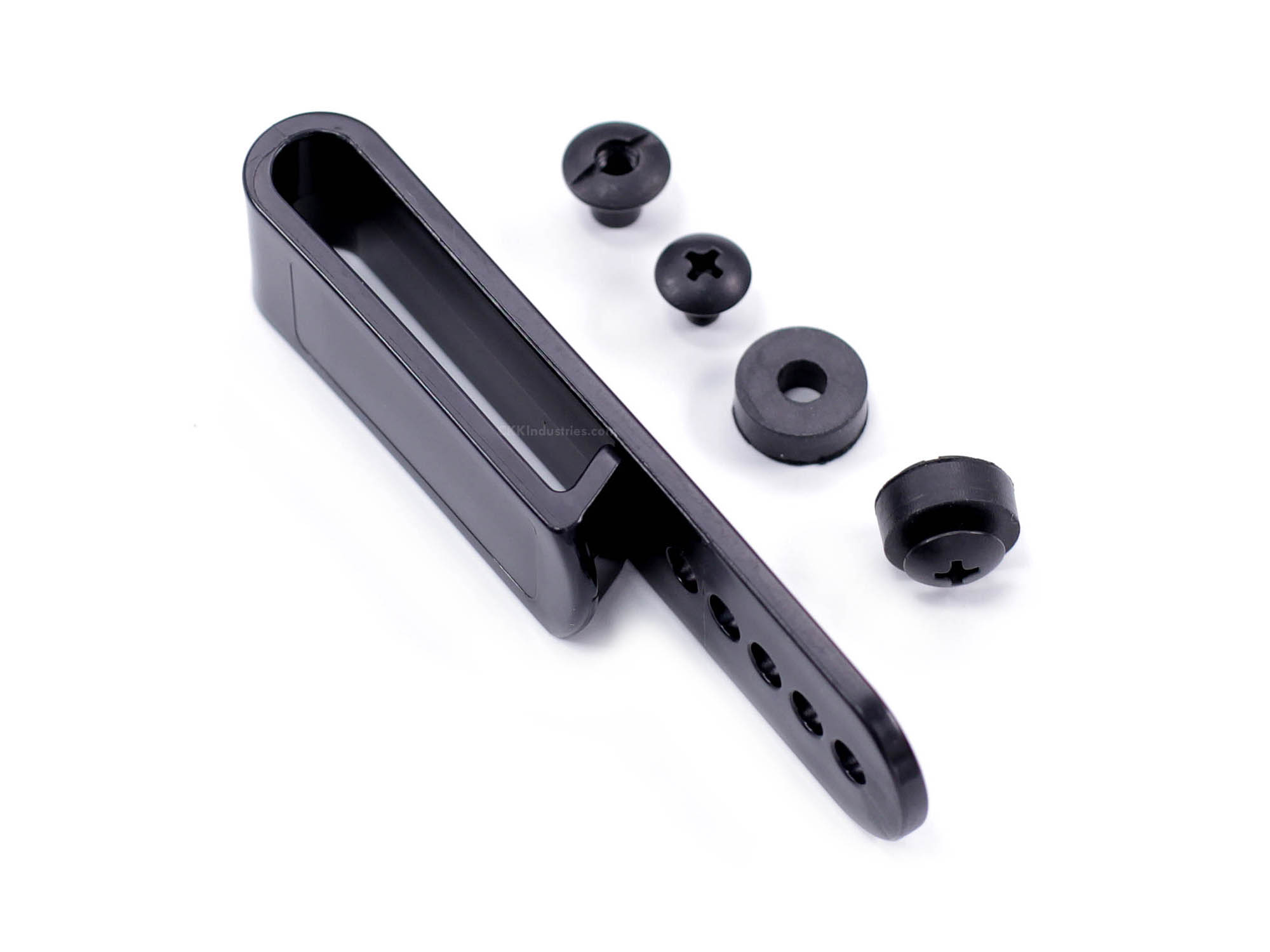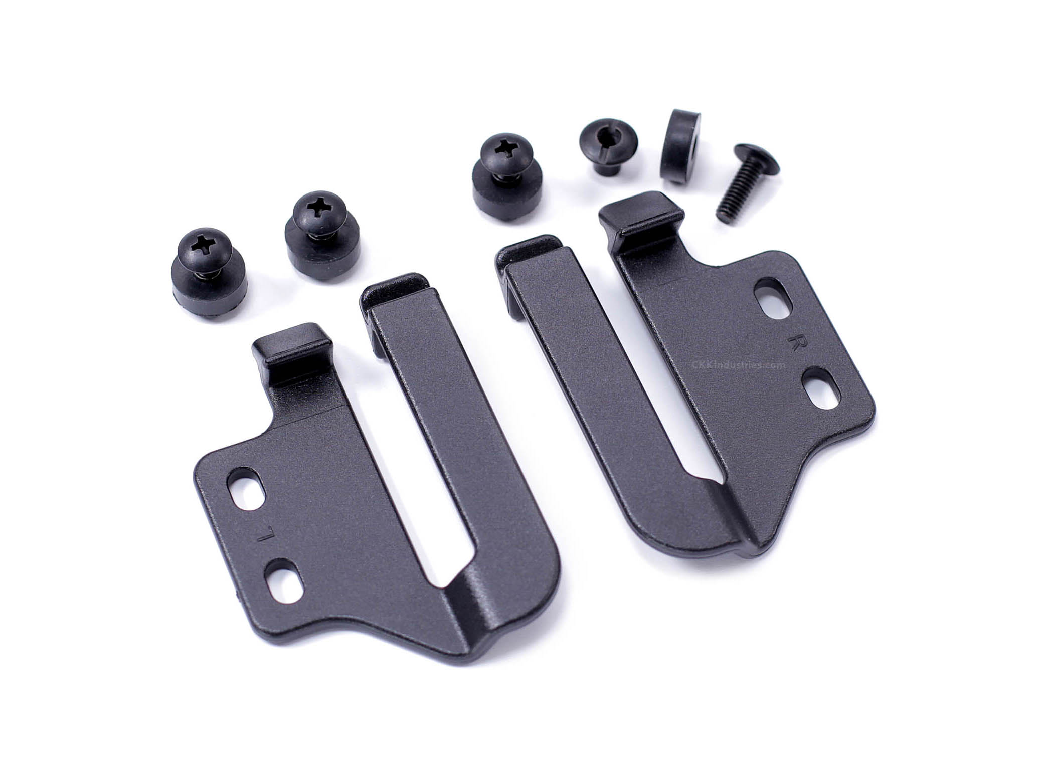 Il existe un grand nombre de marques et de solutions différentes pour tout ce qui concerne les systèmes de fixation, de clips et de Rétention Level 2 (pour les armes à feu). Les modèles présentés ici sont en général en stock à mon atelier. Il est aussi possible de commander d’autres systèmes si vous avez un choix précis.